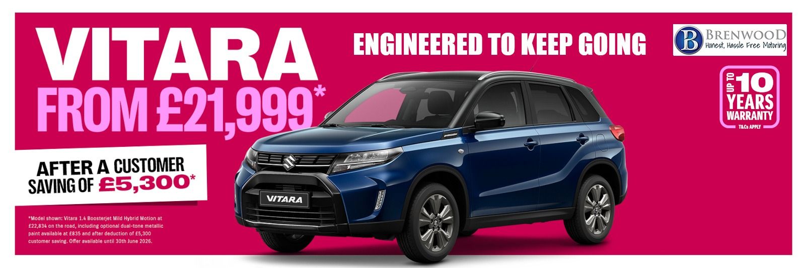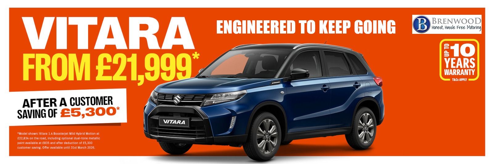 Whether you're commuting in the city, cruising the motorway, or heading off the beaten path, the Vitara delivers performance you can trust — with everyday practicality and modern technology built in.