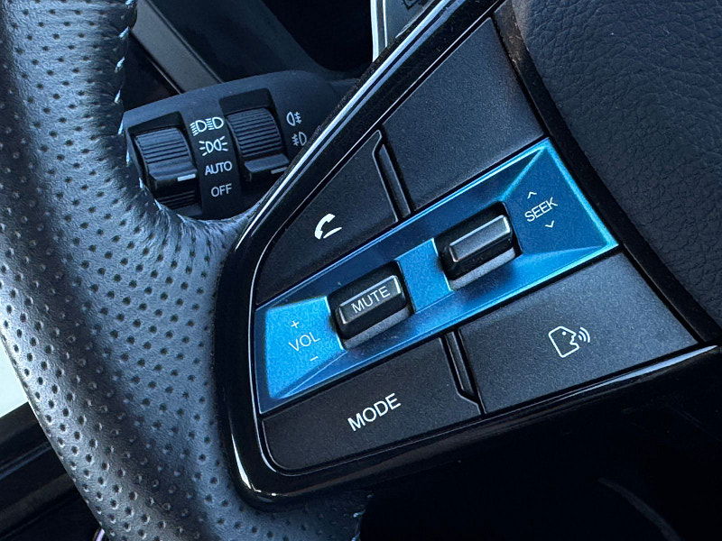- Leather Covered Steering Wheel with Electric Blue Accents